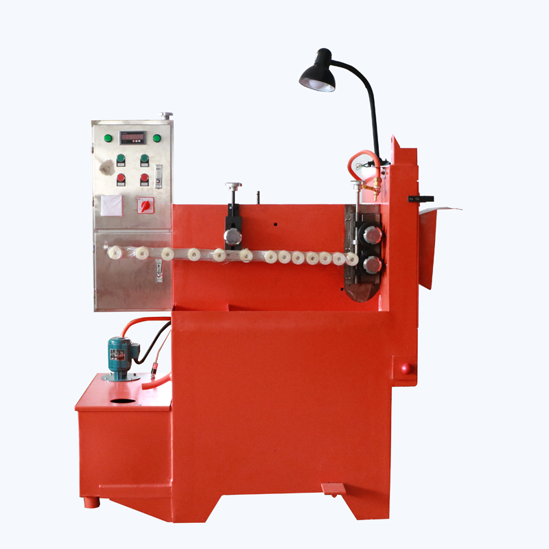 自動(dòng)飛刀切片機(jī)用以生產(chǎn)不飽和聚脂樹棒子毛胚。在堅(jiān)固的機(jī)身上裝有一個(gè)特大飛輪,用以切落較軟的棒材(最高為硬度計(jì)算40)??蔁崴詣?dòng)循環(huán)使用。